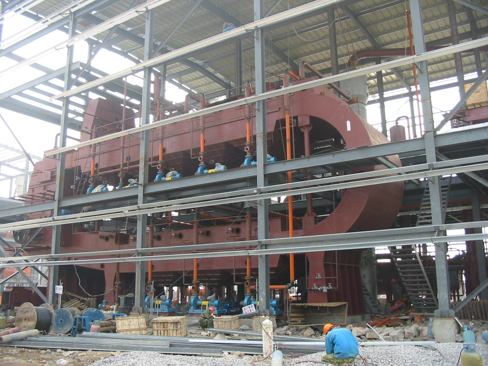 環(huán)形浸出設(shè)備與別的設(shè)備相比具有一些優(yōu)勢(shì)。物料首先從浸出設(shè)備上部的存料箱,經(jīng)過(guò)刮板鏈條的推動(dòng)下進(jìn)入噴淋浸出工段。經(jīng)過(guò)多次不間斷的噴淋之后經(jīng)過(guò)彎曲段進(jìn)入下層繼續(xù)噴淋,在浸出的后續(xù)工段重新使用新溶劑再次噴淋。然后經(jīng)過(guò)瀝干工段后由下料口送出。環(huán)形浸出設(shè)備和其他設(shè)備相比有更大的優(yōu)勢(shì)--物料經(jīng)過(guò)上層的噴淋浸出后由彎曲工段送入下層,在這個(gè)過(guò)程中物料能夠自然翻斗,物料的浸出更加均勻充分,同時(shí)相比其他的設(shè)備料層更淺,濕粕的含溶量較少。環(huán)形浸出設(shè)備在彎曲工段進(jìn)行翻斗,是的物料能夠經(jīng)過(guò)充分的浸泡。但受限于彎曲工段,一般環(huán)形浸出設(shè)備的料層比較淺。料層淺有利于溶劑和混合油對(duì)料層的充分滲透,浸出時(shí)間短,濕粕殘溶低且殘油低;但該設(shè)備單位的處理量相對(duì)較少,且料層對(duì)混合油的過(guò)濾效果差,混合油中的餅?zāi)┹^高,不利于菜籽等油料。